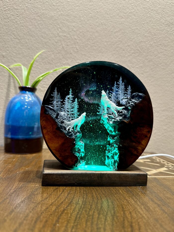 When the moon light comes, there is an epic moment of howling wolves in the heart of the forest. This scene is captured in our meticulously handcrafted Aurora Borealis howling wolf lamp. Let’s decorate your room with the majestic beauty of nature.