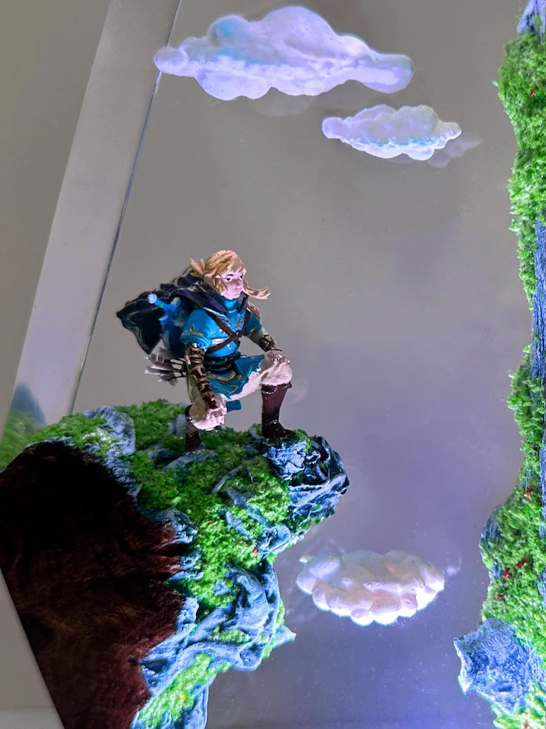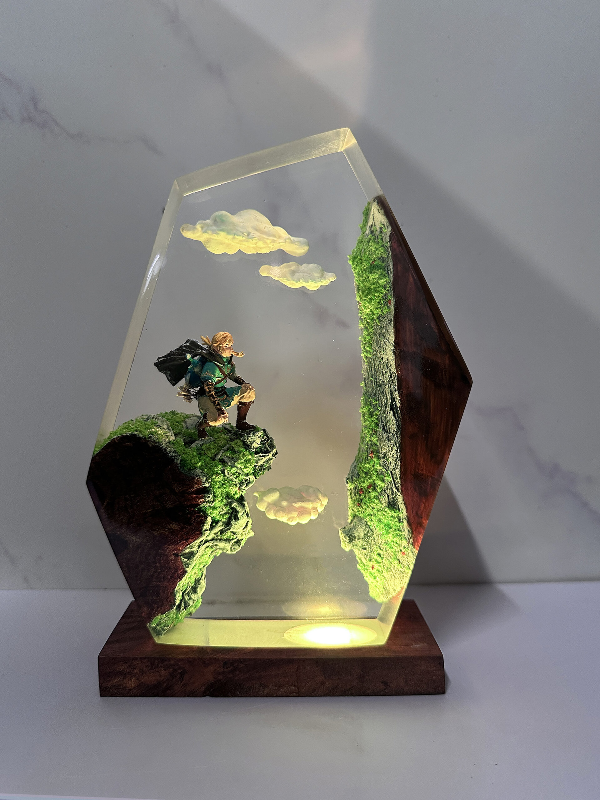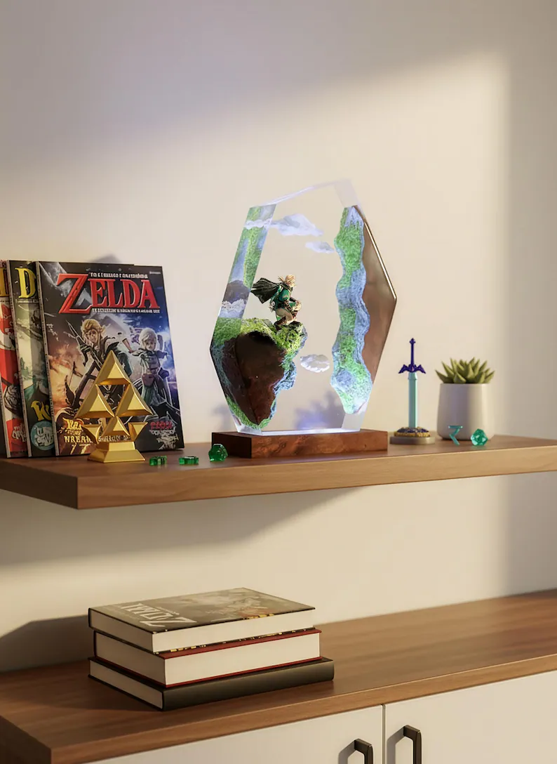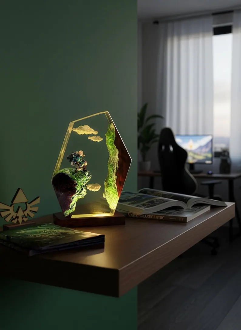 Home Epoxy Lamp Link on Cliff Polygon Resin Art | Handmade Zelda Collectible