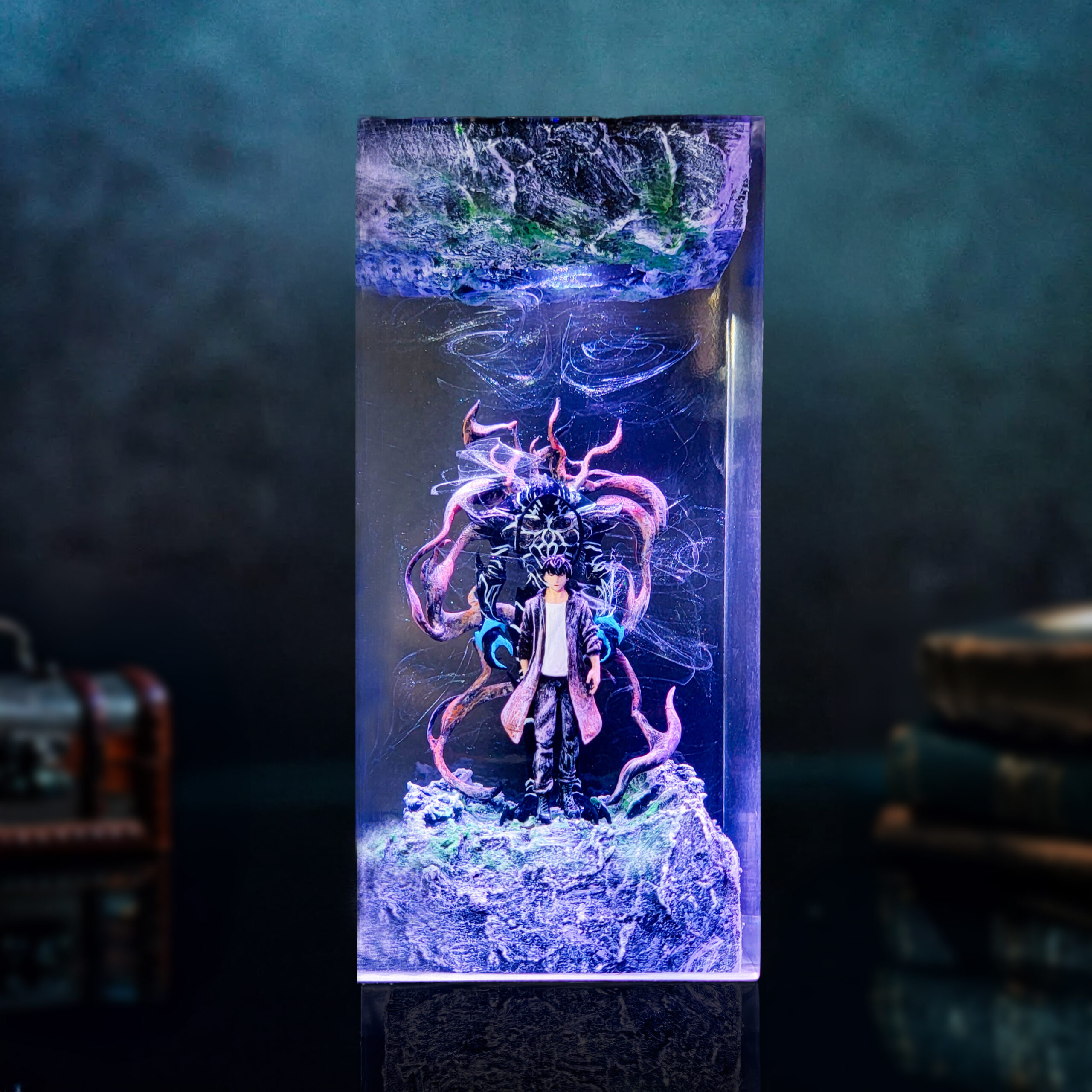 A perfect addition to any anime-themed room, gaming den, or fantasy collection. Elevate your space with this extraordinary Shadow Monarch & Ant King Resin Night Light – a beacon of power and a testament to your love for Solo Leveling!
